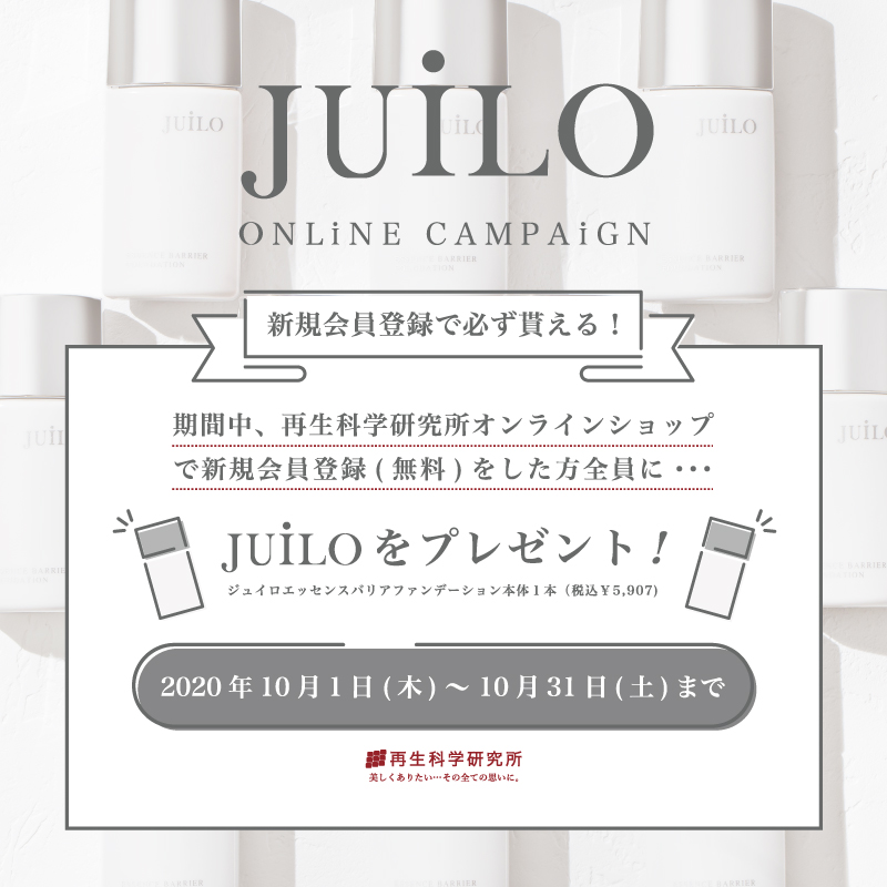 再生科学研究所に新規登録でファンデーションのJUILOの現品6000円分が貰える。~10/31。