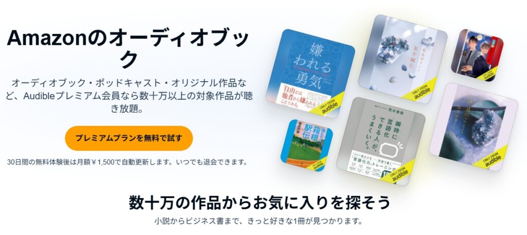 【固定】アマゾンでオーディオブックが聴き放題のAudibleで3か月分4500円が月額99円の超絶セール。「国宝」「カフネ」も無料で聴けるぞ。~5/12。