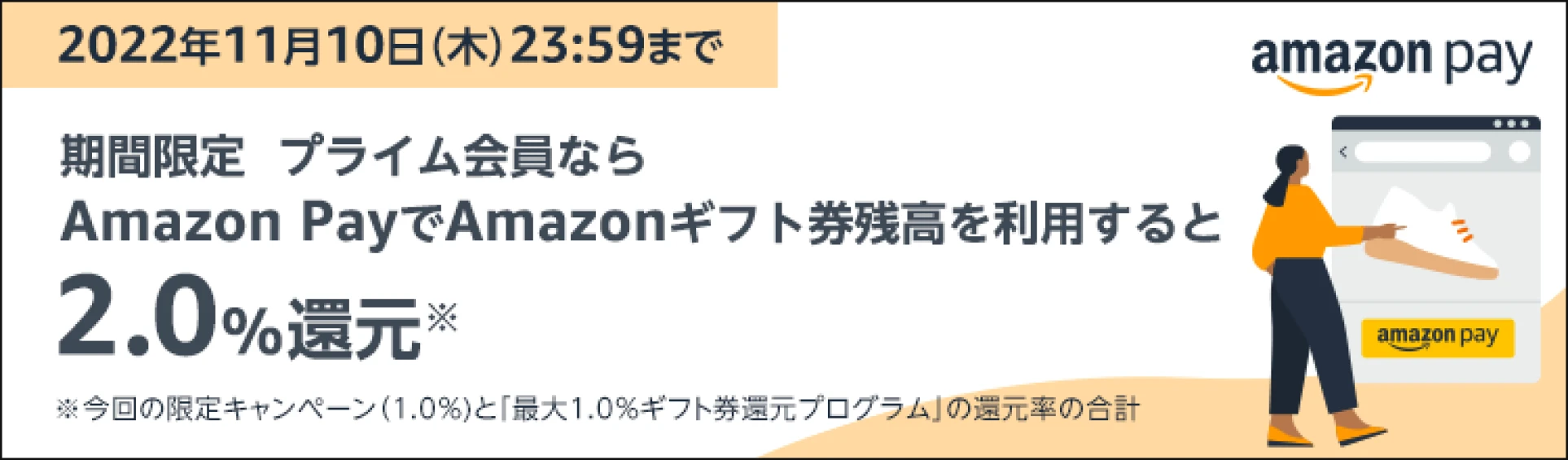 Amazonギフト券を使った支払い金額の2.0%分を還元します。