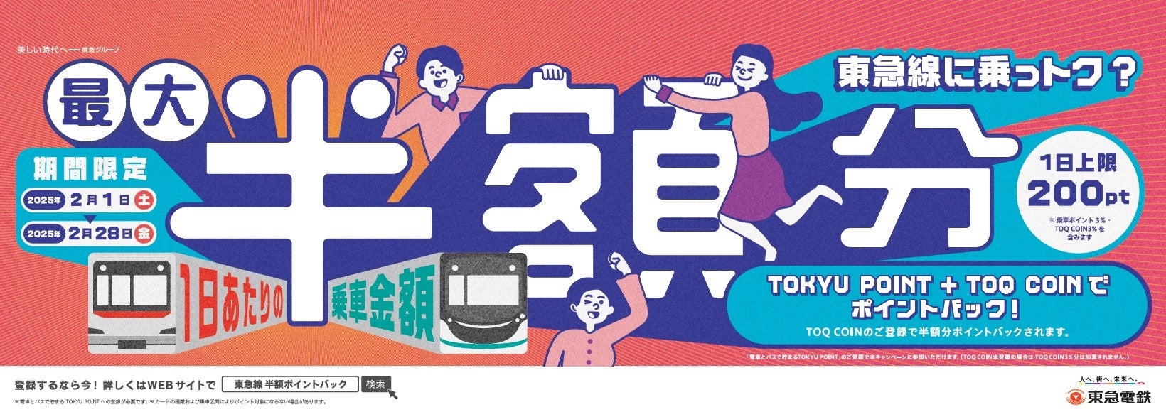 東急が乗車金額の最大半額分をTOKYU POINT・TOQ COINでポイントバックするキャンペーンを実施。2/1~2/28。