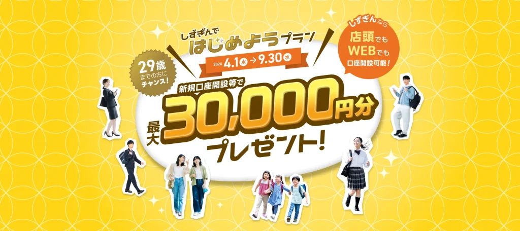 静岡銀行に29歳以下が新規口座開設すると、最大30,000円が貰える。~9/30。