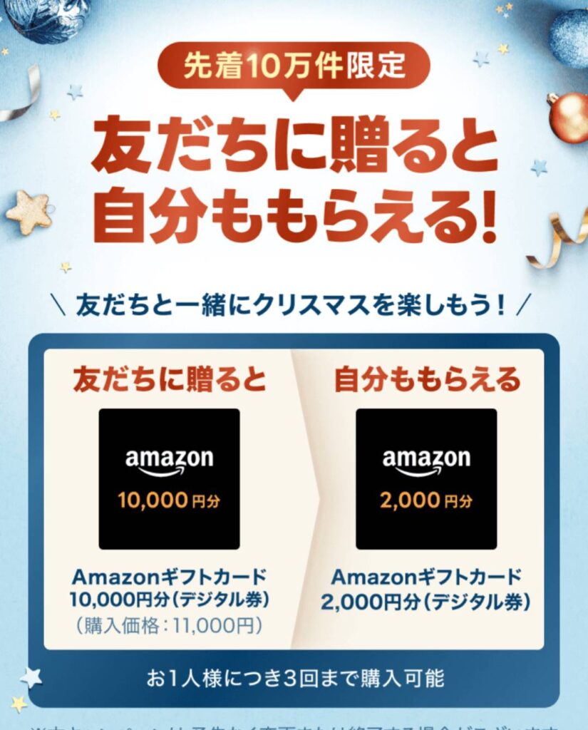 LINEギフト、アマギフ合計3000円分がお得になるクリスマスキャンペーンを開催へ。スタバでSend6Get1も開催中。~12/31 11時。