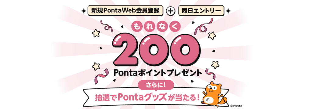 PontaWebに新規会員登録するともれなく200Pontaポイント、抽選で30名にPontaグッズが当たる。~2/28。