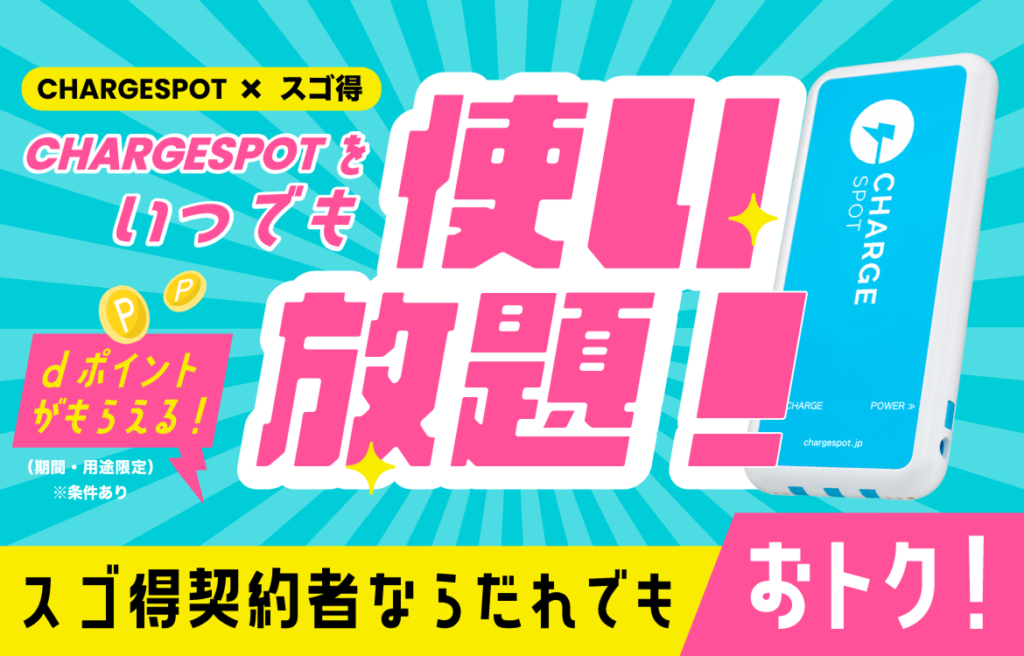 ドコモのスゴ得コンテンツにレンタルモバイルバッテリーのChargeSPOT使い放題が追加。そもそも最初から自分で買うよな。
