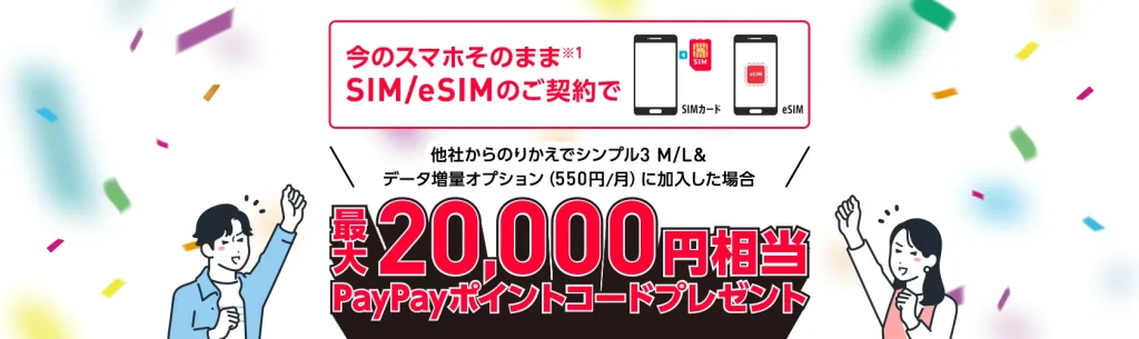 【固定】ワイモバイルでSIMだけ契約でインセ2倍、一括20,000円相当PayPayポイントが貰える。