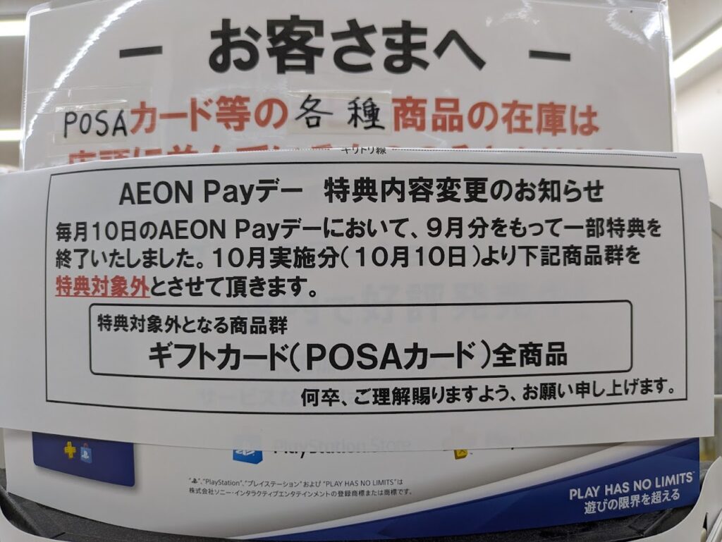 ミニストップのAEON Pay毎月10日10倍、POSAカードは対象外に。