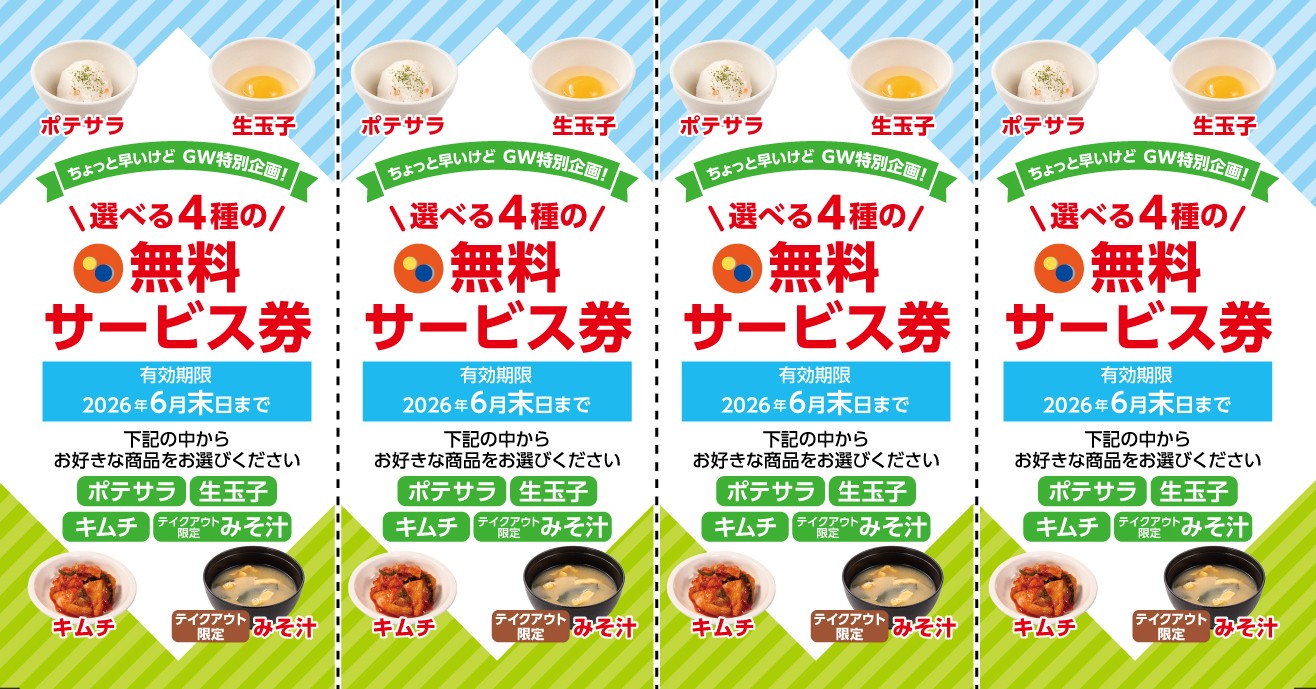 吉野家でQUICPayで支払うと生野菜サラダ&みそ汁(150円相当)が1食無料。6/10~6/23。