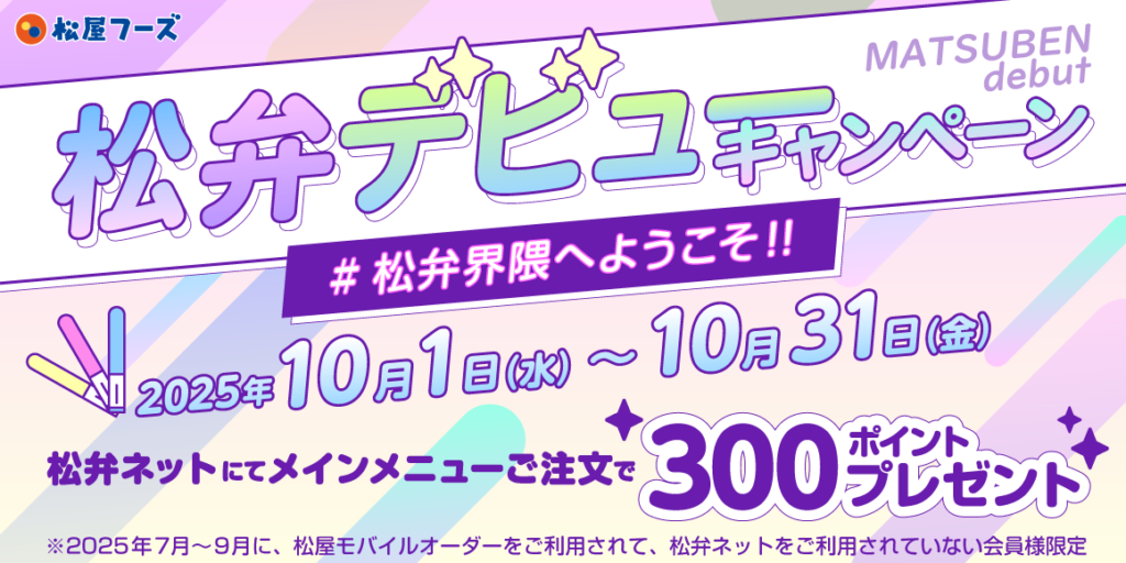 松屋のネット予約「松弁ネット」に新規利用で300ポイント。~10/31。