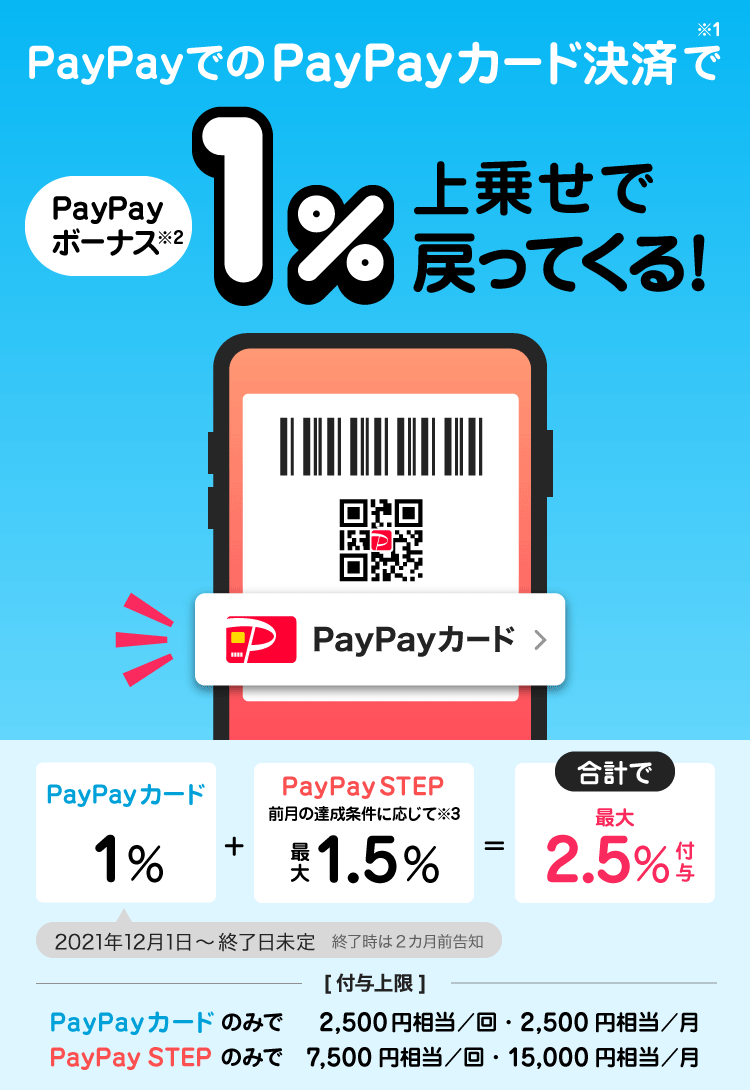 PayPayカード特典 支払い金額の1%に相当するPayPayボーナス付与