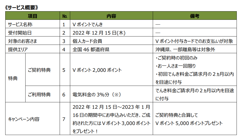 提供するでんきサービスのVポイントでんきがサービスインしました。