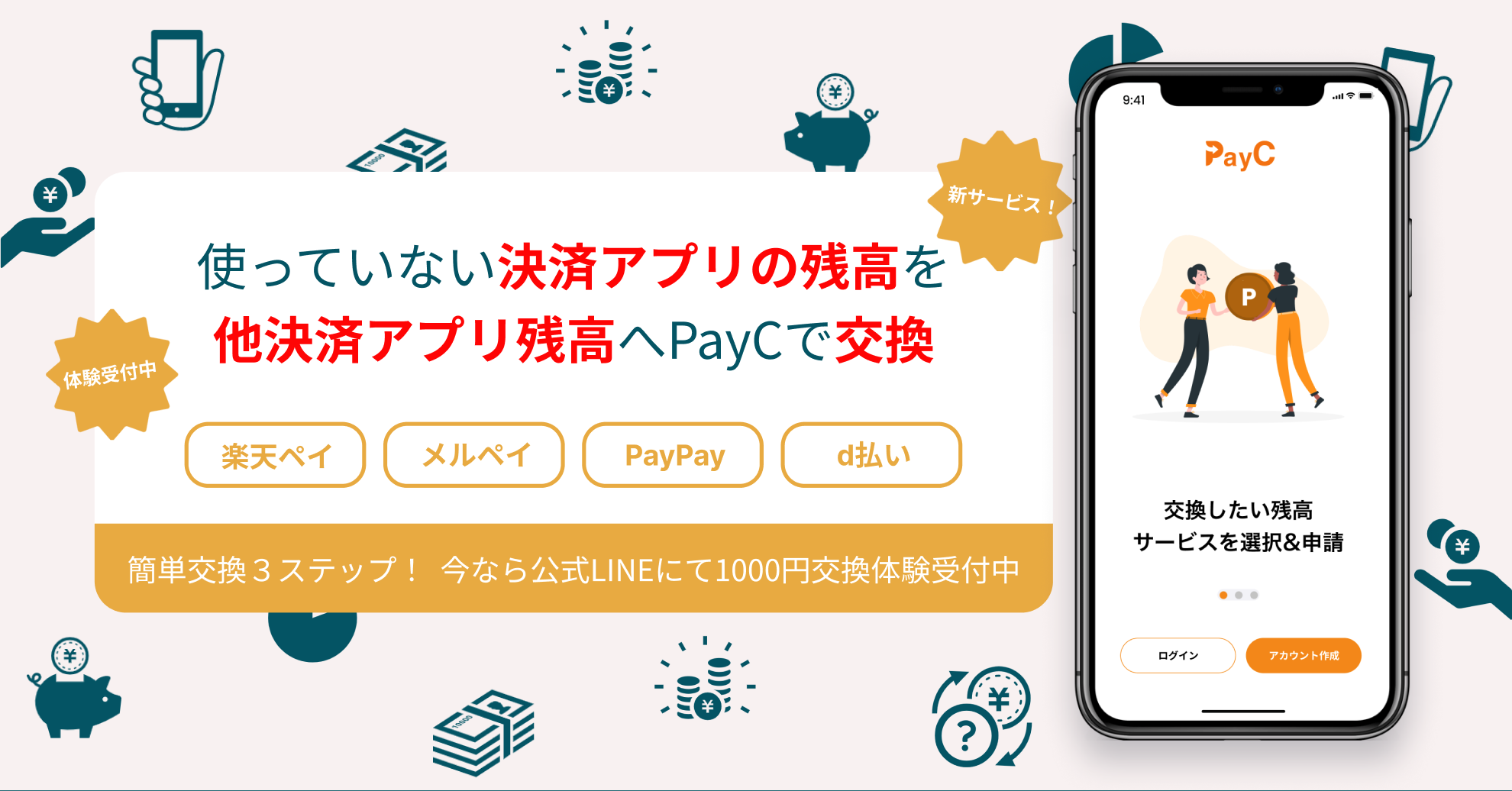 キャッシュレス決済の残高相互変換サービス「PayC」がサービスインしています。