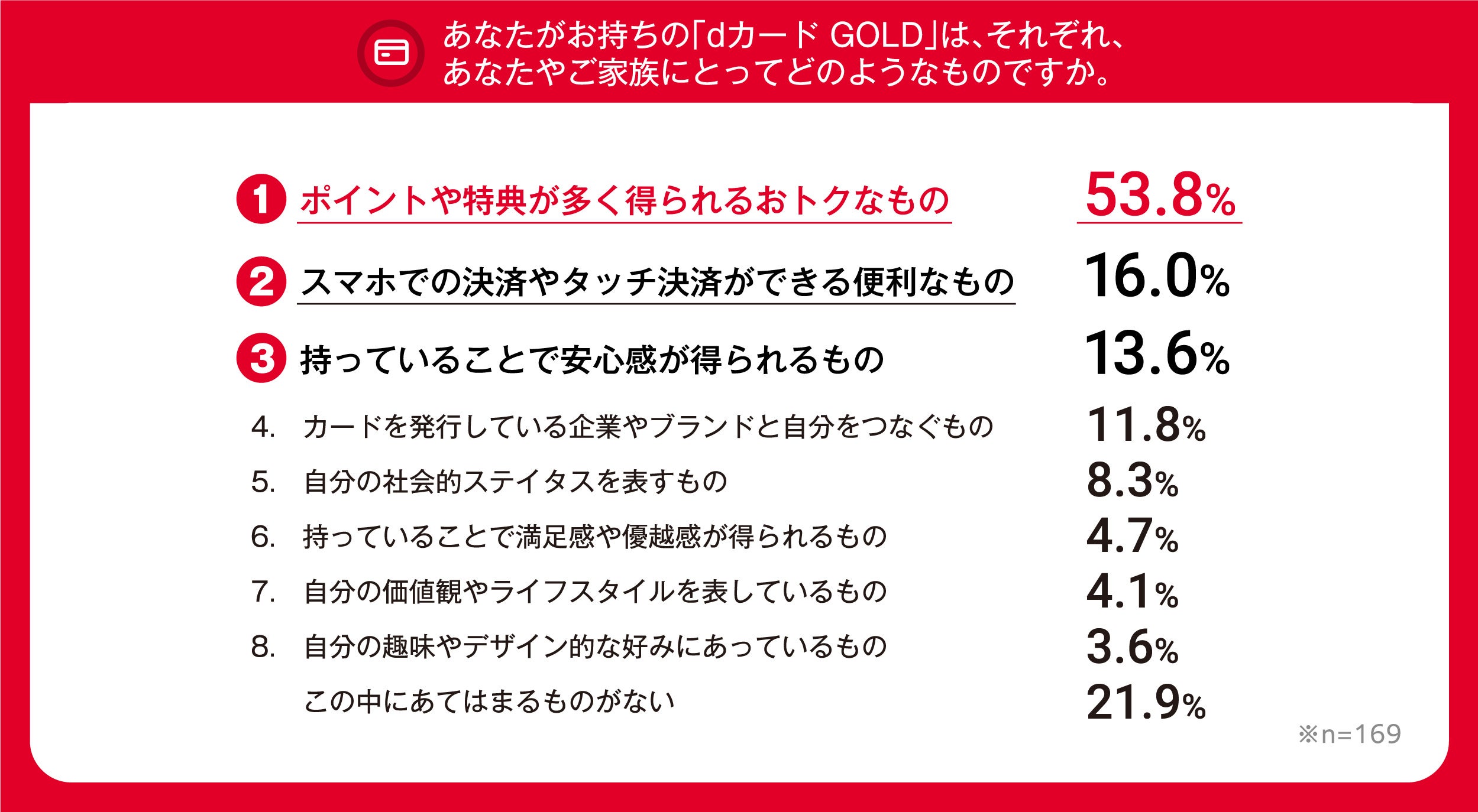 dカードゴールドの保有目的としては、「ポイントや特典が多く得られるオトクなもの」