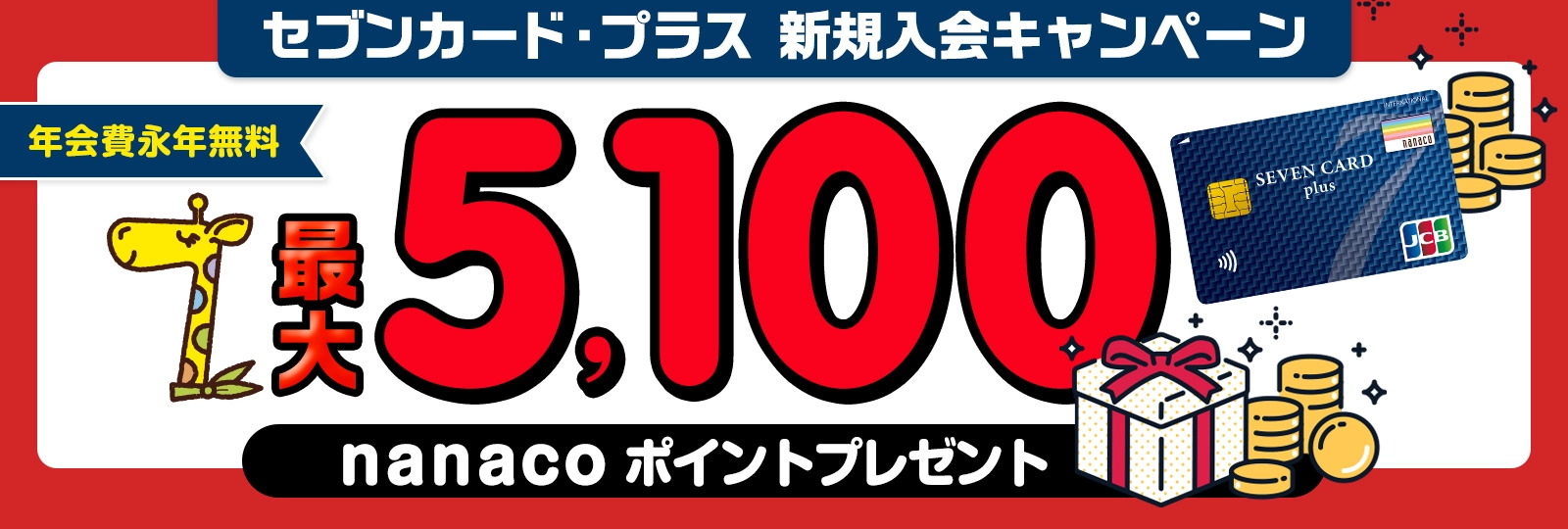 いまいち注目されないセブンカード・プラスですが、次の通り入会キャンペーンを開催中です。