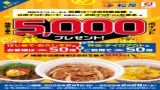 松屋でdポイントカード提示で抽選で1200名に最大5,000dポイントが当たる。はじめて・久しぶり利用や弁当・テイクアウトは当選確率最大100倍アップ。~2/28。