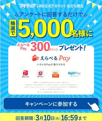 マイティアLINEで5000名に当たる。~3/10。