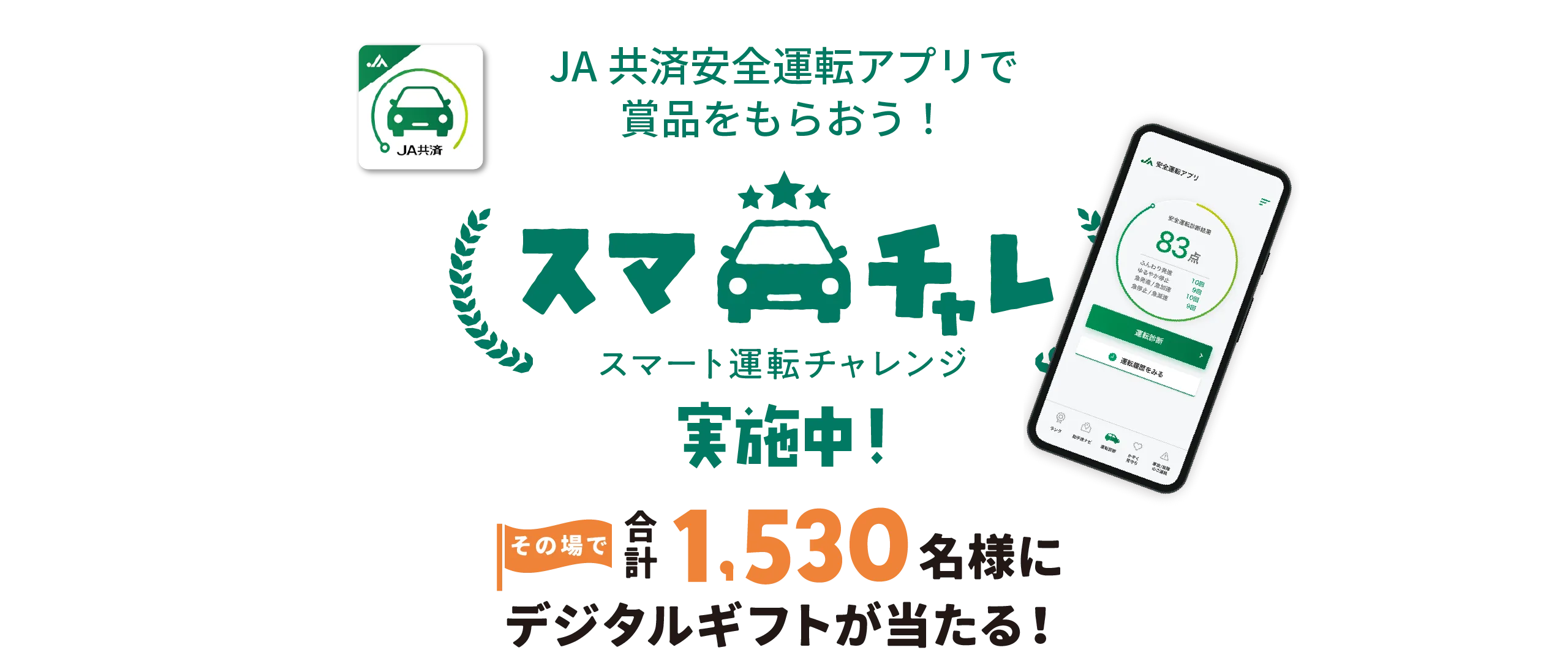 スマート運転チャレンジ実施中!|JA共済【公式】で1530名に当たる。~2026/1/31。