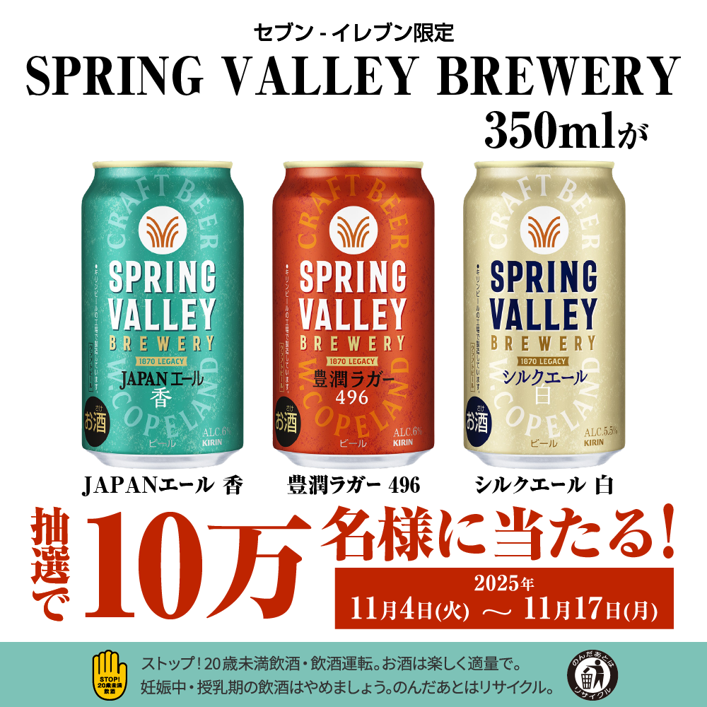 【d限定】キリンのスプリングバレーシルクエール<白>、豊潤ラガー、JAPANエール 香が抽選で10万名にその場で当たる。11/4~11/17。