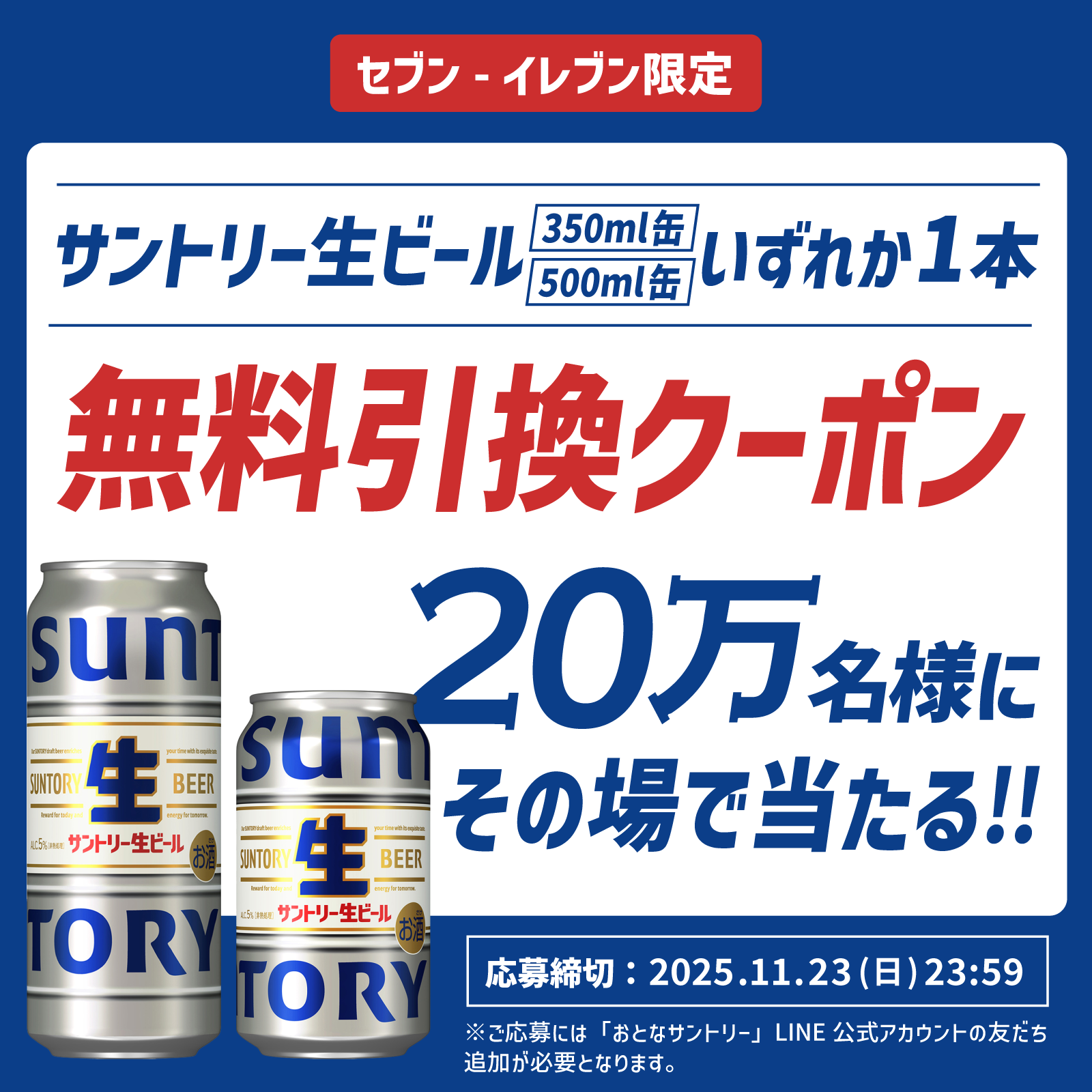 【d限定】サントリー 生ビールが20万名にその場で当たる。11/10~11/23。