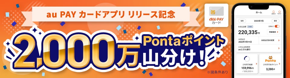 auPAYカードアプリで2000万Pontaポイントが山分けへ。6/19~7/31。