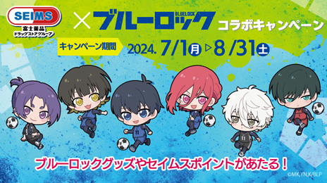 アニメ『ブルーロック』とセイムスがコラボ、オリジナルグッズやポイントが1000名に当たる。7/1~8/31。