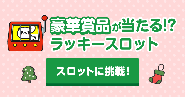 【クリスマス特集】スロットを回して豪華賞品を当てよう、ということで下記商品が当たります。