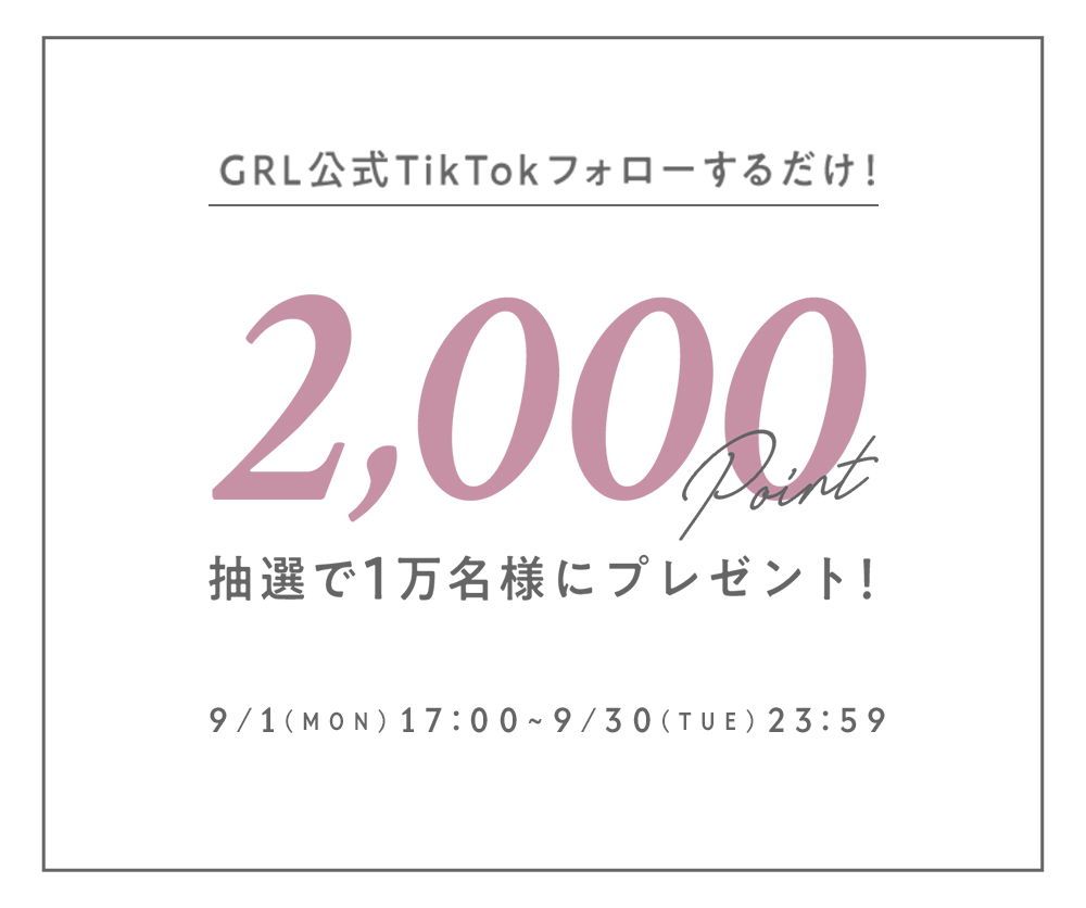 若いギャルファッションのGRLですが、Tiktokで抽選で1万名にGRLで使える2000ポイントが貰えます。