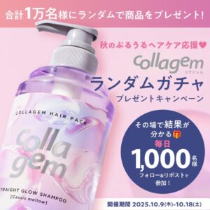 コラジェムのヘアケア商品がランダムで毎日1000名、合計1万名にその場で当たる。~10/18。