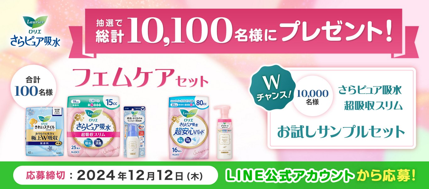 花王のロリエ さらピュアが抽選で10100名に当たる。~12/12。