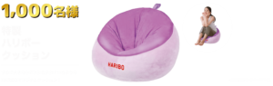 ハリボー製品を2袋買うと、抽選で1,000名に特製ハリボークッションが当たる。~11/30。