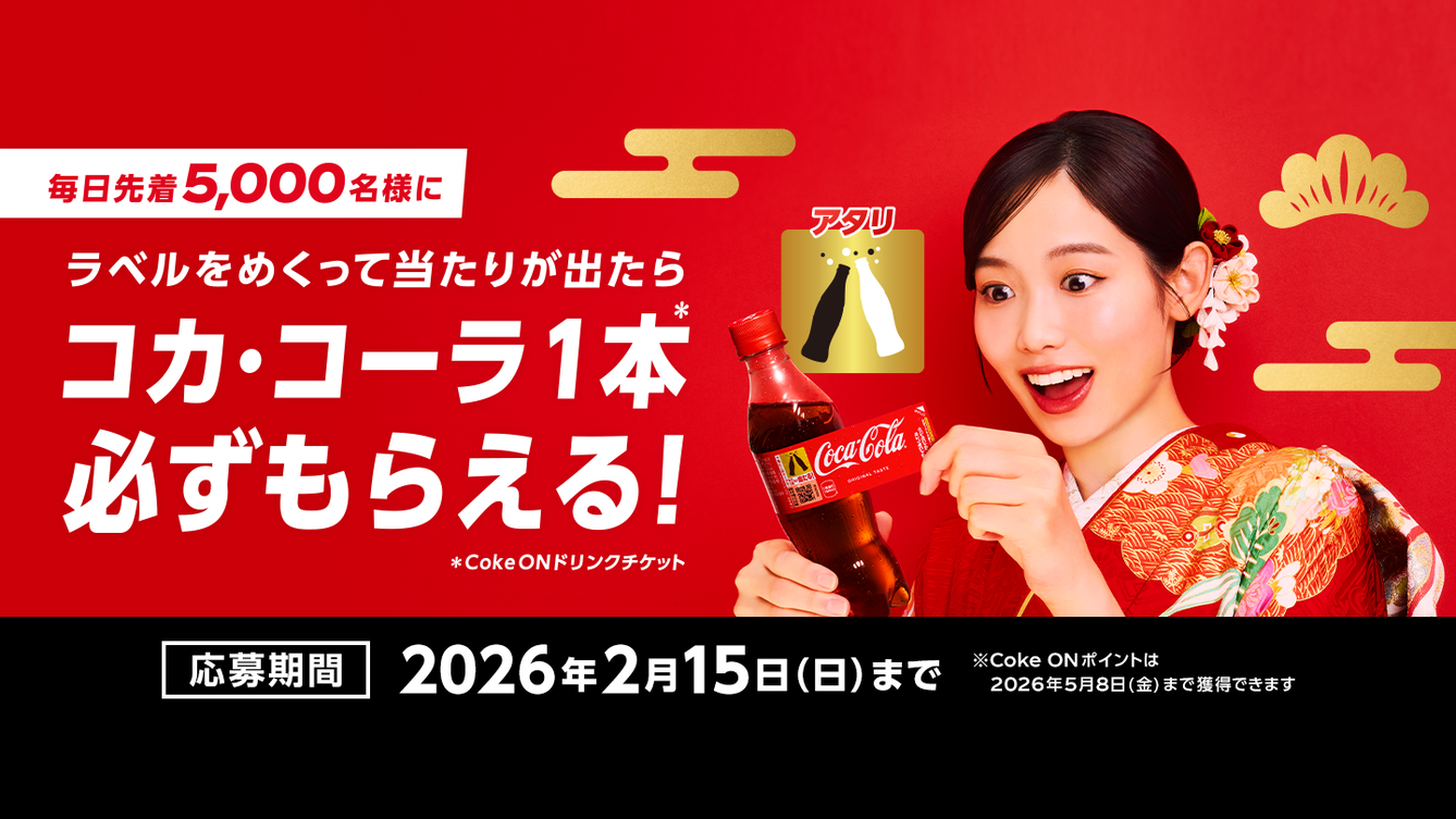 コカ・コーラを買ってスキャンすると、毎日先着5,000名にCoke ONドリンクチケット、それ以降は1ポイントが貰える。~2026/2/15。