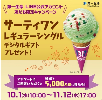 サーティワン アイスクリームで3100名に当たる。~10/31。