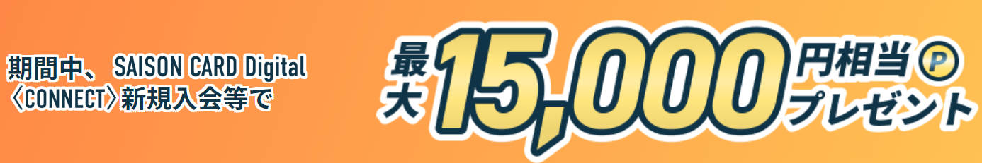 また、SAISON CARD Digital <CONNECT>入会 & 利用 & クレカ積立で、最大15,000円相当の