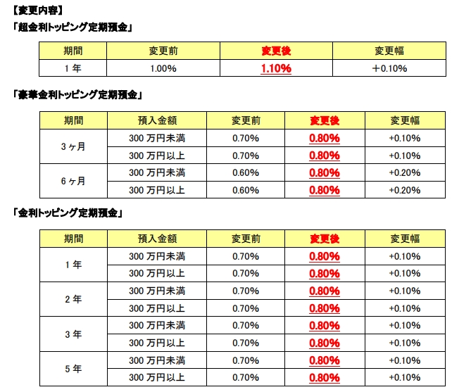 なお、一番金利の高い超金利トッピング定期預金は、預入金額が10万円以上100万円まで。