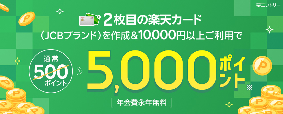 ールを受け取った方限定!2枚目の楽天カードを作成&1,000円以上利用で5,000ポイントプレゼント