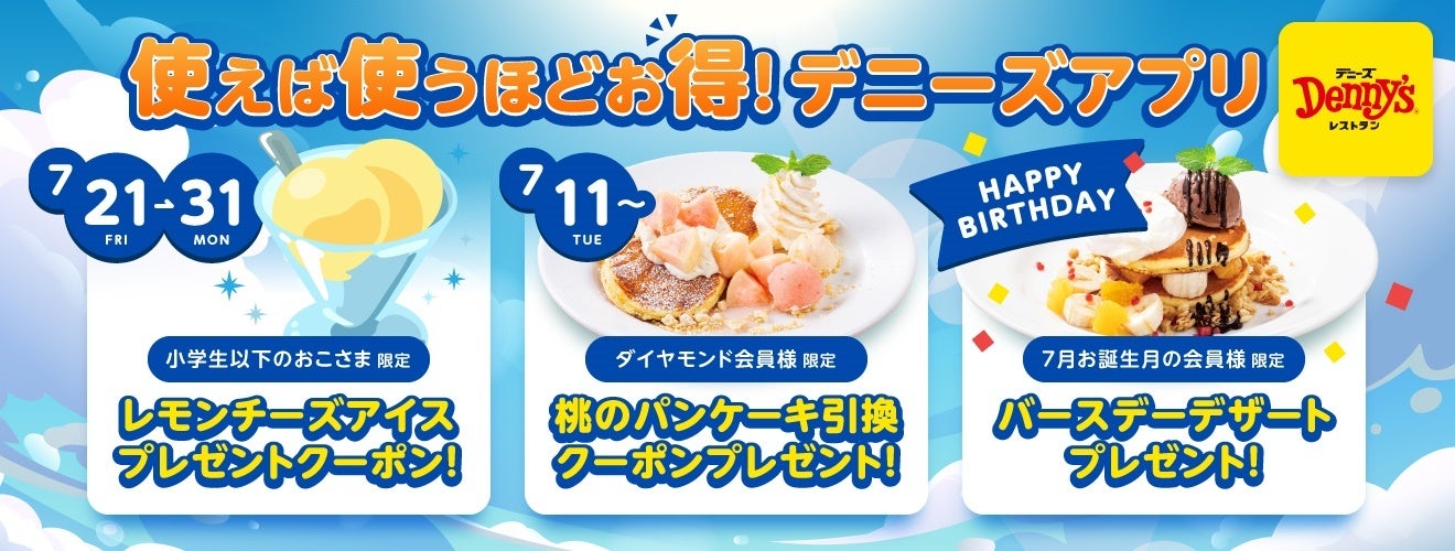 「デニーズアプリ」にて、「夏休みおこさまアイスクーポン」ということで、を配信いたします。