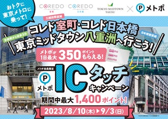 東京メトロでCOREDO室町・日本橋・東京ミッドタウン八重洲へ行くと、最大350メトポが貰える。乞食ジョギング・改札外乗り換え技で688円儲かるかも。~9/3。