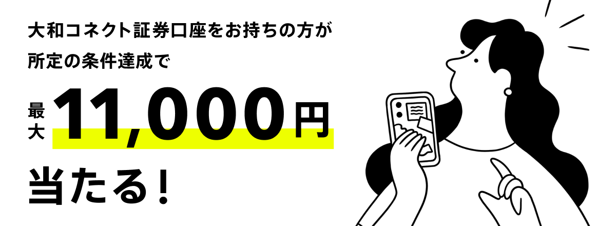 大和コネクト証券口座を新規開設した方を対象に、もれなく現金1,000円がもらえます。