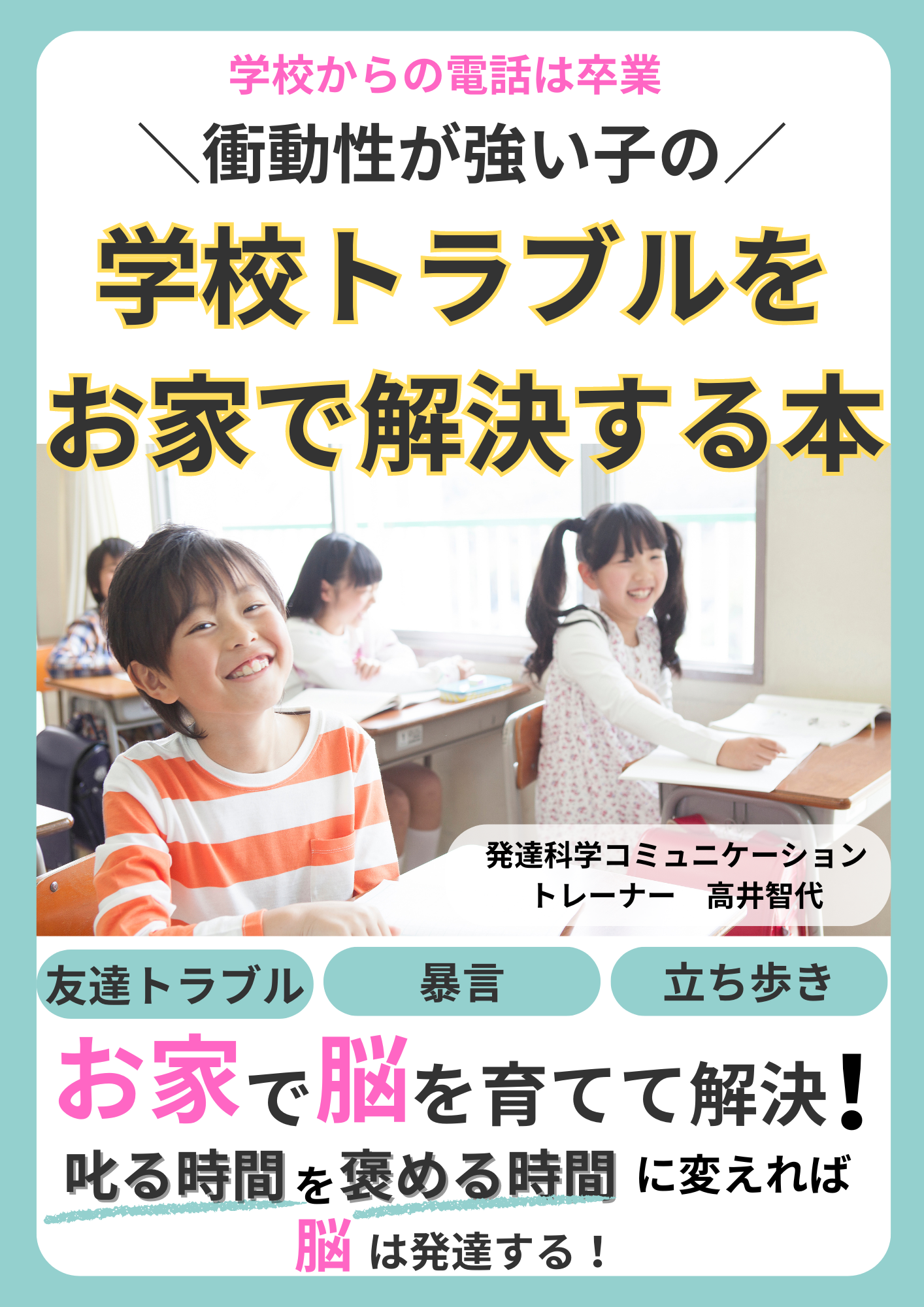 はじめまして 発達科学コミュニケーショントレーナーの高井智代です。衝動性の強い子に行動習慣をつける専門家として活動しています。この度は、衝動性が強く、学校トラブルが多い子の困りごとをお家で解決する方法をお伝えする電子書籍をリリースしました。