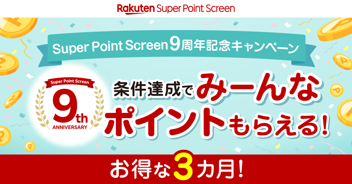 ポイ活アプリ「楽天Super Point Screen」で先着100万名に100万ポイント山分け。全員で50万ポイント山分け。~12/31。