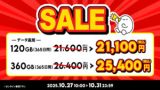 povo2.0で1年120GBや360GBが500円~1000円安くセール。~10/31。