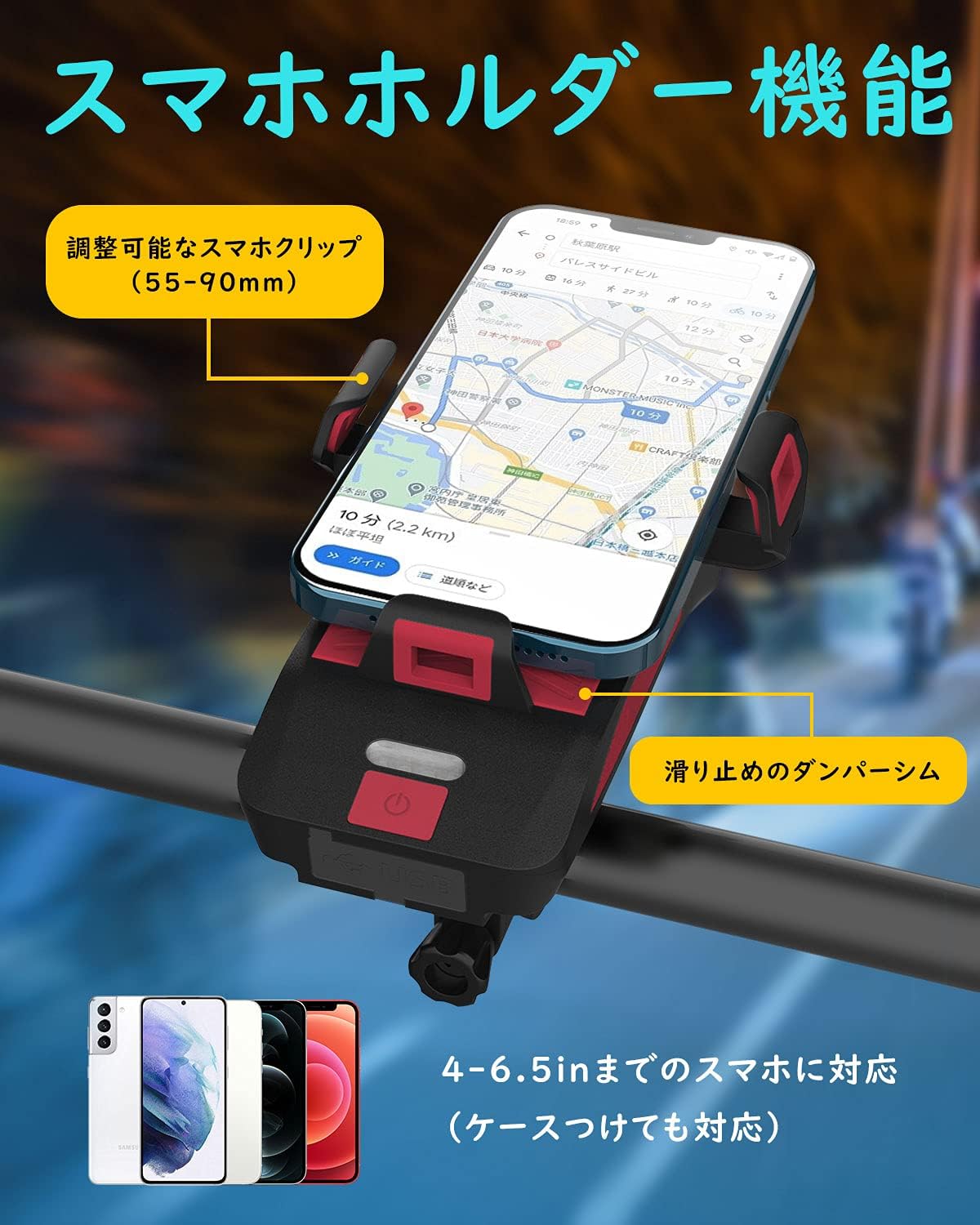 スマホホルダーが上部についていますが、間違いなくスマホが暴れて吹っ飛んでいきますので、