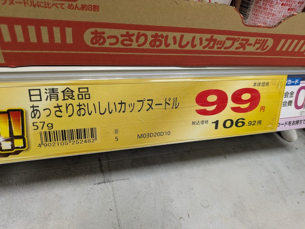 原価もコストも内容量もカットモデル、日清 あっさりおいしいカップヌードル 20個がスーパーよりちょっと安い。