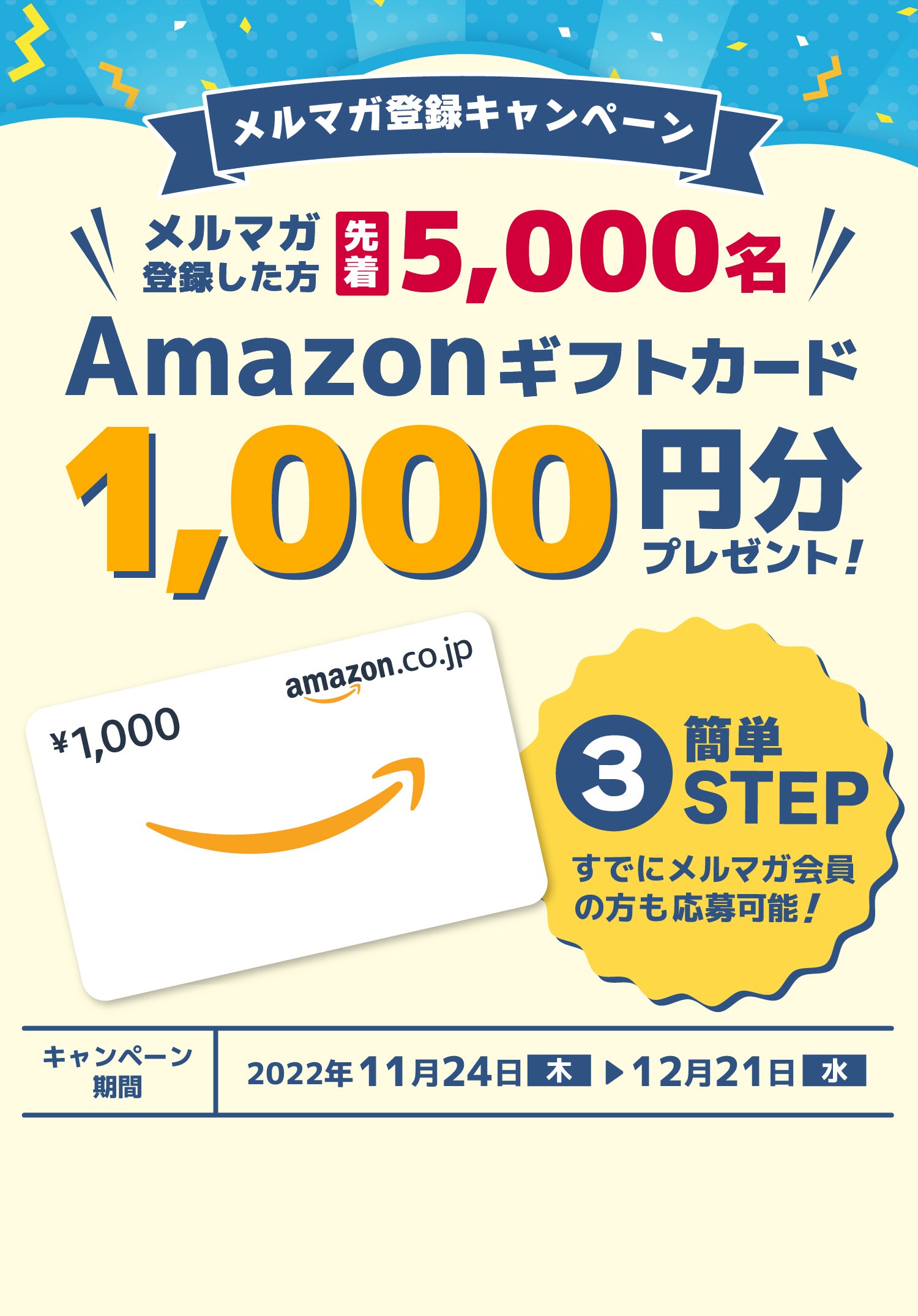 応募者が5,000名に達した場合にはエントリーいただきましても、賞品の配布対象外となります。