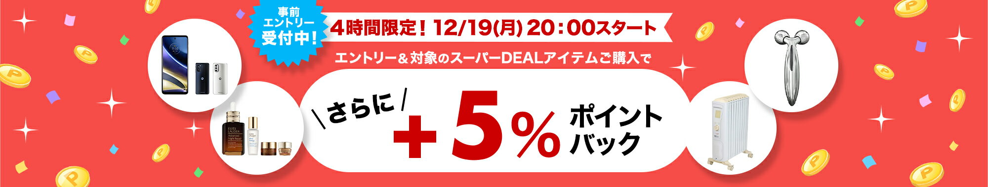 楽天スーパーDEALで4時間限定、+5%ポイントバック。対象商品限定。20時~24時。