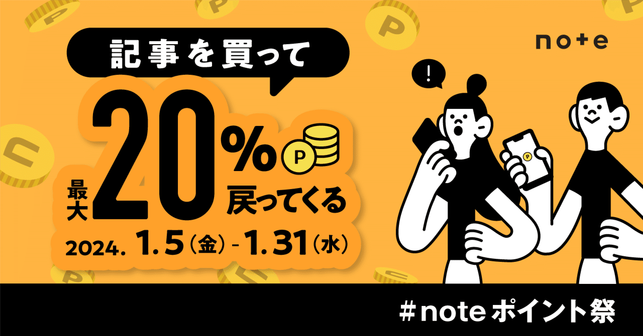 有料noteを買うと新規20%、既存10%ポイントバック。情報商材の購入が捗るな。〜1/31。