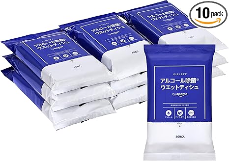 アマゾンでby Amazon アルコール 除菌 ウェットティッシュ 400枚(40枚×10パック)が2割引。