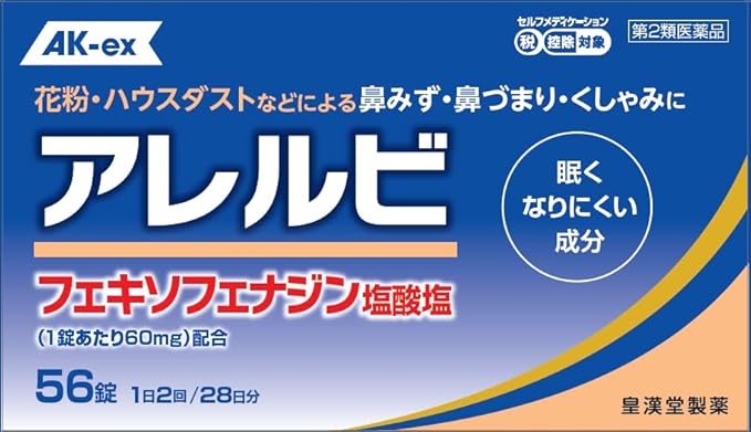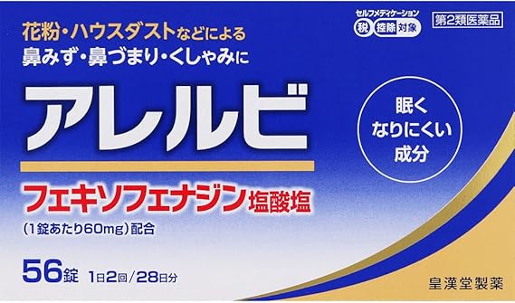 2錠で有効成分がアレグラFX同様のフェキソフェナジン塩酸塩が120mg配合されています。