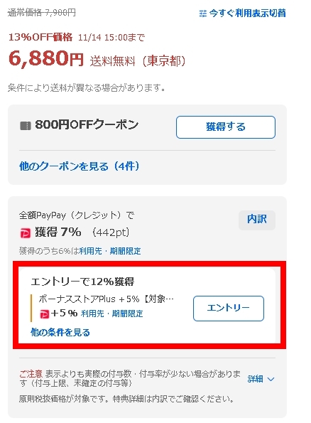 これを押さずに買うほうが難しい。ここに表示されないキャンペーンもありましたっけ。。。