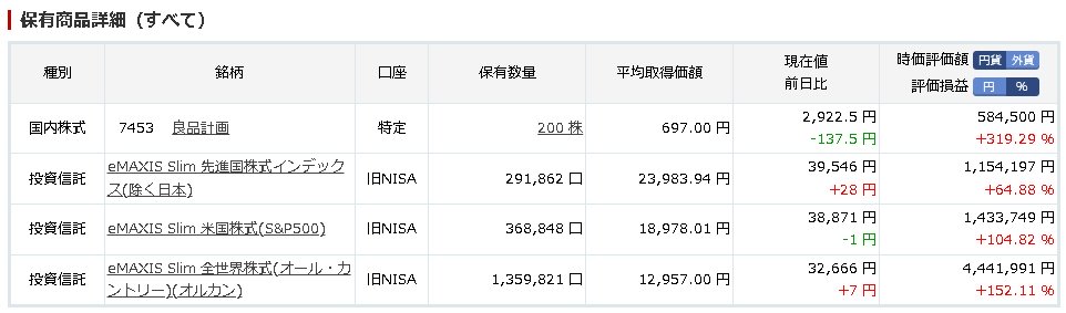 管理人の旧NISA、いい感じ。良品計画を売ってオルカンに乗り換える?