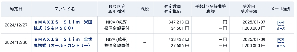 人気のオルカンやS&P500は受渡日として数営業日が加算されるため、年内に申し込みが必要です。